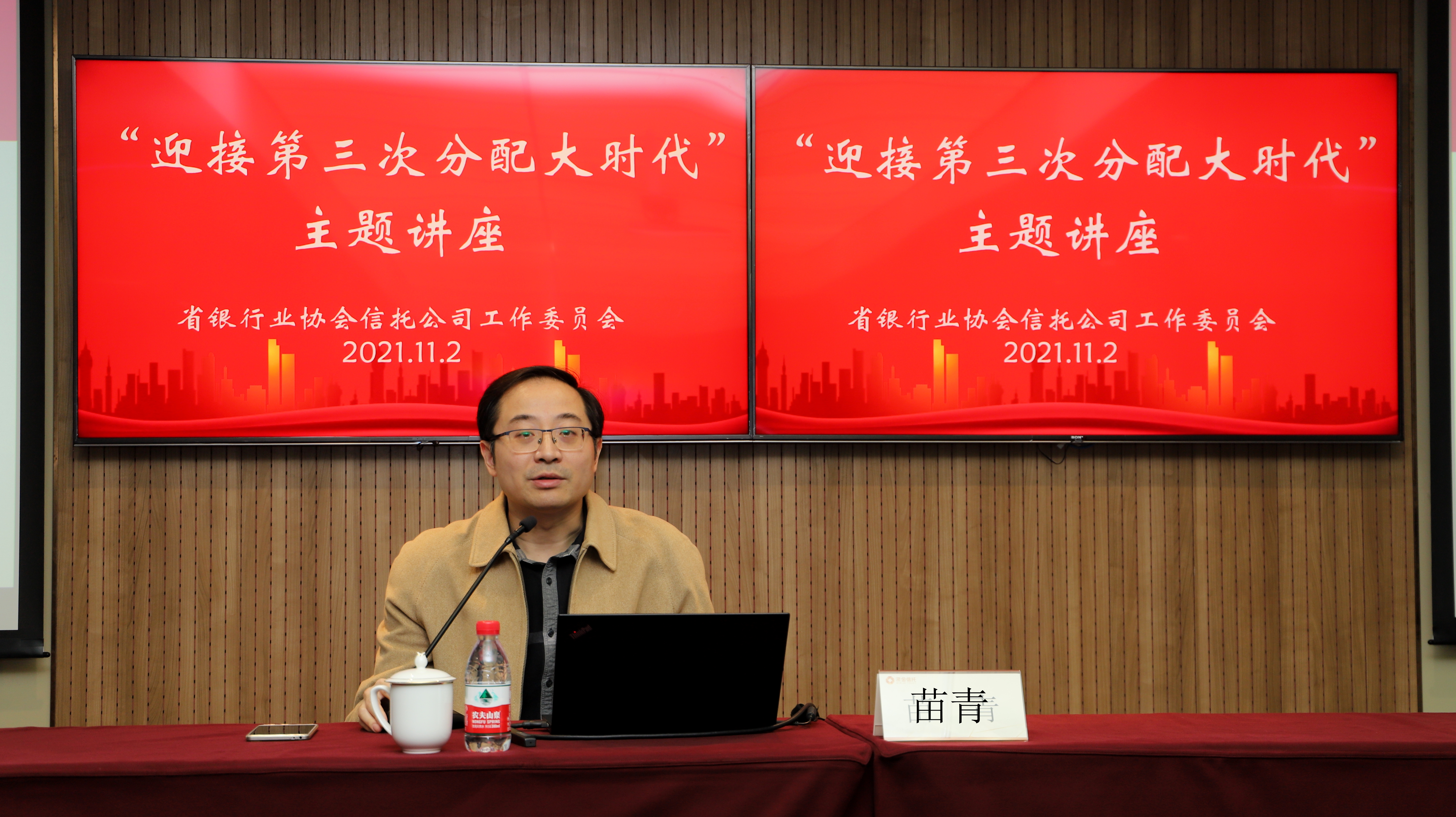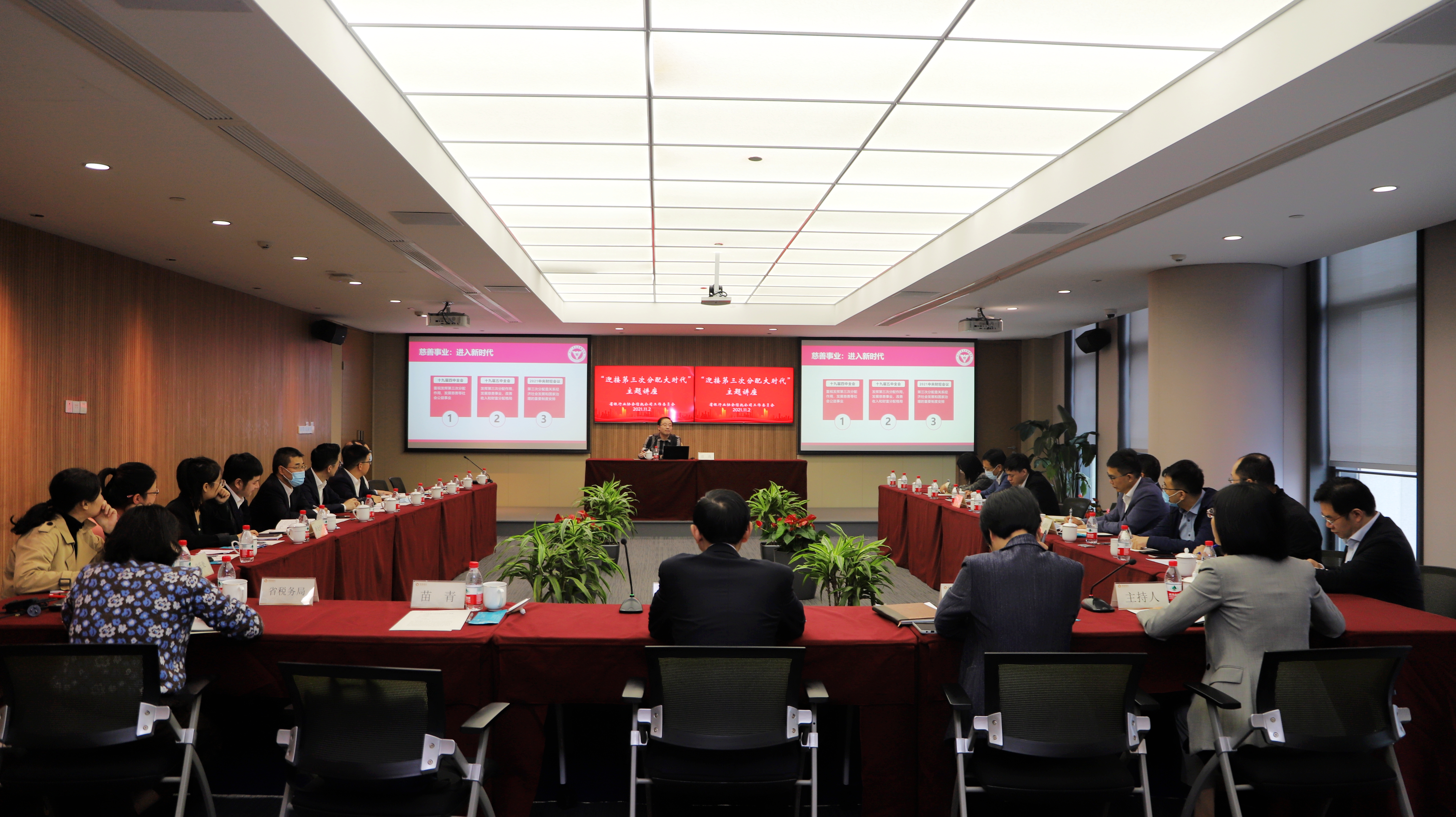 11月2日,由浙江省銀行業協會信托公司工作委員會主辦、公司承辦的“迎接第三次分配大時代”專題講座在杭州圓滿落幕。浙江銀保監局副局長葉慧霖、浙江大學公共管理學院教授苗青、省稅務局、浙江銀保監局信托處、中建投信托、杭工商信托、萬向信托、浙金信托等機構代表出席會議。會議由公司黨委書記、董事長余艷梅主持。