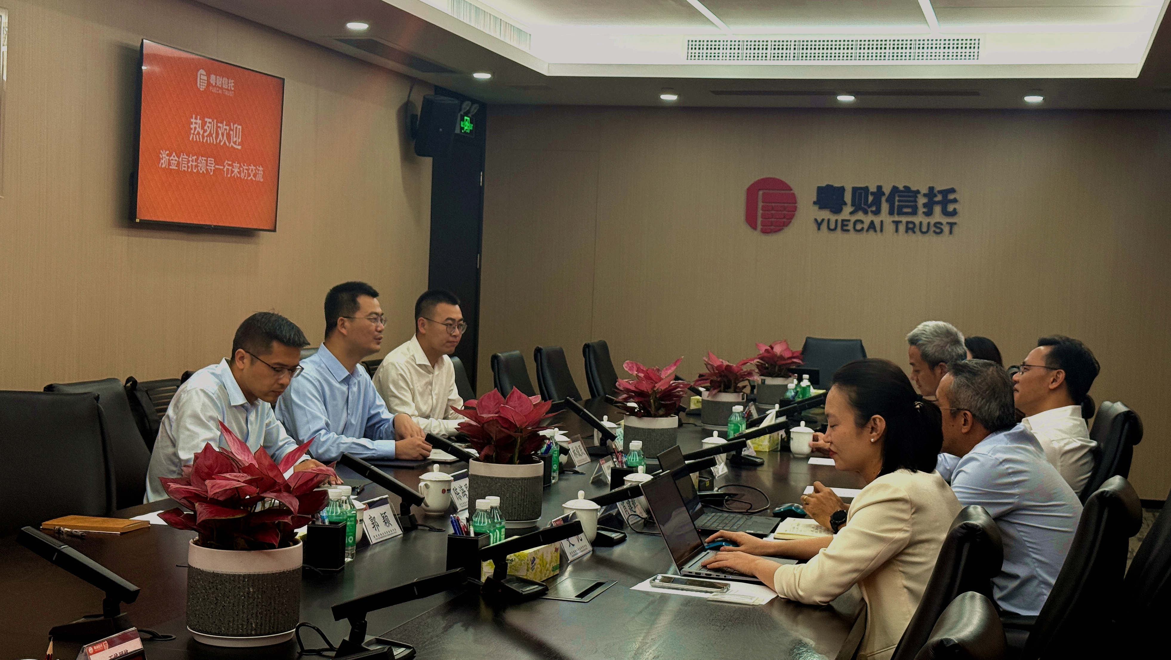 9月12日下午,公司總經理、董事林俊民帶隊赴廣東粵財信托有限公司(以下簡稱“粵財信托”)開展同業交流。粵財信托黨委書記、董事長莫敏秋,總會計師肖建輝,總經理助理王浩鵬攜相關部門人員熱情接待。公司黨委副書記、董事陳海民,總經理助理李紅偉及相關部門負責人陪同交流。