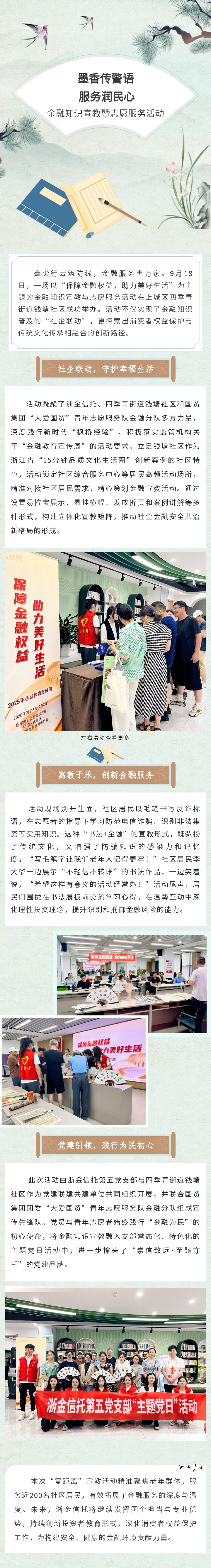 墨香傳警語,服務潤民心——浙金信托開展金融知識宣教暨志愿服務活動